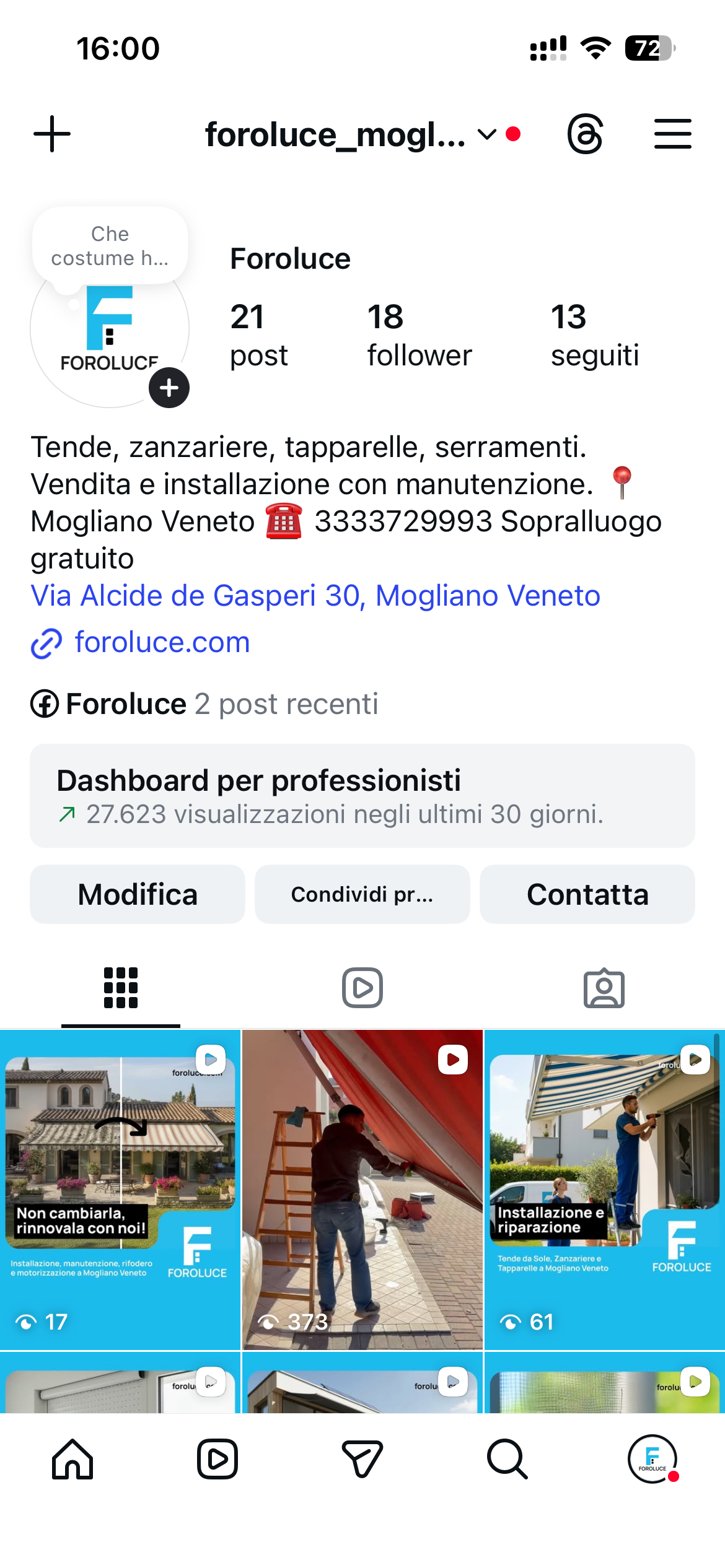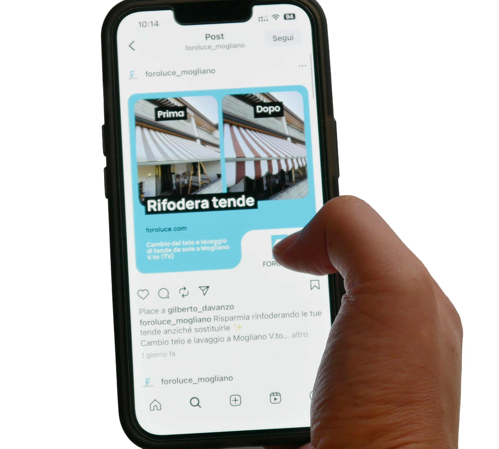 Collaborazione con Foroluce, un’azienda specializzata in tende da sole, pergole e sistemi di schermatura. Partendo dal logo esistente fornito dal cliente, è stata sviluppata una comunicazione coordinata per social e campagne pubblicitarie mirate ad acquisizione di nuovi contatti. Sono state realizzate inoltre proposte di materiali promozionali stampati come magliette e banner per uso locale.